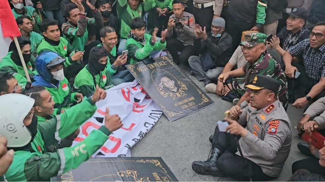 Pantauan metrokendari.com aksi damai ratusan massa Ojol berlangsung aman dsn kondusif.
