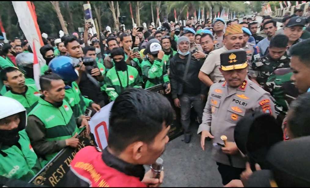 Aksi Unjuk Rasa Ratusan Ojol di Polda Sultra Berlangsung Aman Dan Damai