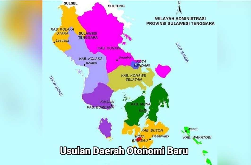 Dikutip dari surat yang beredar tersebut, Provinsi Sulawesi Tenggara (Sultra), tercatat dalam usulan DOB. Di Sultra nama daerah yang diusulkan diantaranya :