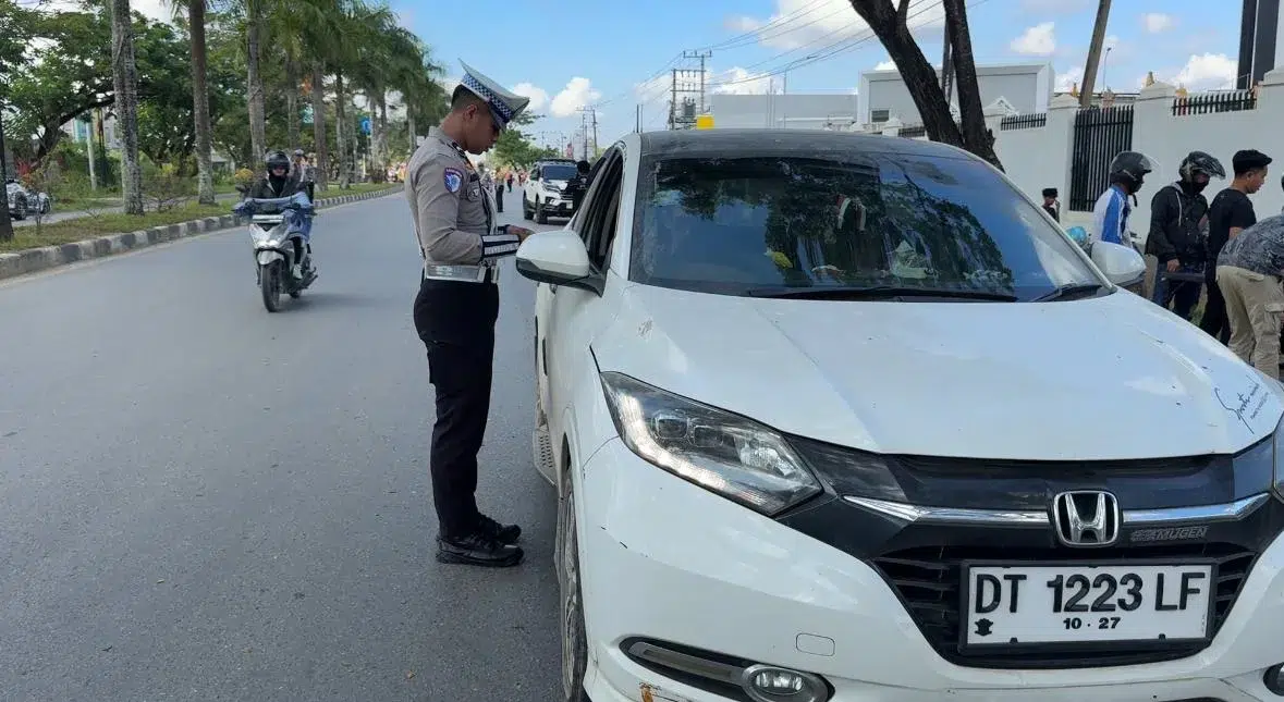 Razia dilakukan terhadap kendaraan roda dua maupun empat di sejumlah titik, salah satunya di Jalan Laode Hadi Bypass, Kelurahan Wundudopi, Kecamatan Wua-Wua, Kota Kendari, pada Jumat (25/7/2025).
