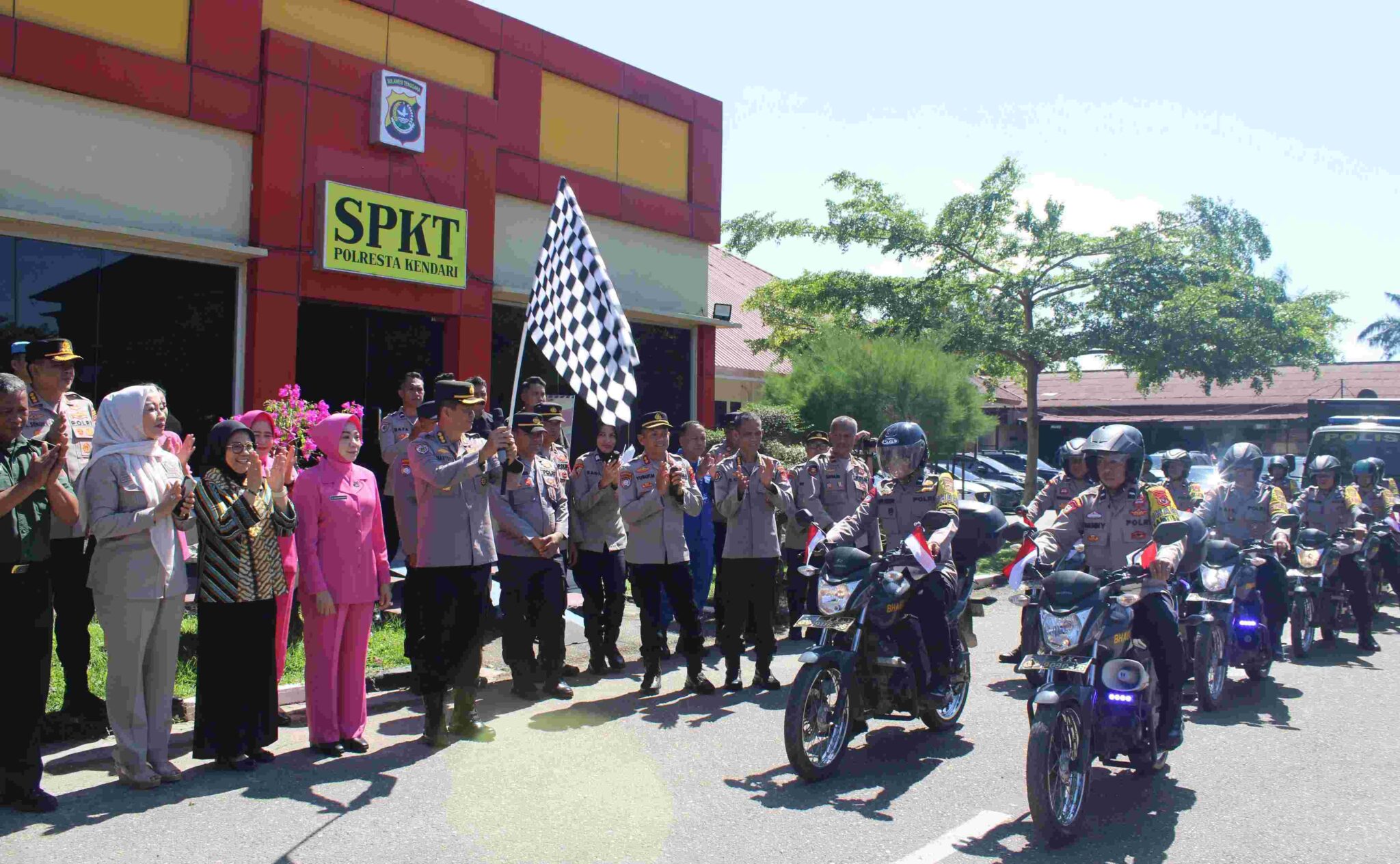 Tidak hanya menyerahkan secara langsung, Ketua Bhayangkari Sultra juga memimpin pelepasan penyaluran bantuan sosial oleh para Bhabinkamtibmas yang menggunakan sepeda motor untuk menjangkau warga di lokasi-lokasi yang akan diakses.