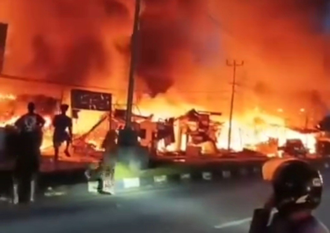 Kebakaran itu menghanguskan sejumlah lapak pedagang dan sebuah bangunan Ruko hingga mobil warga.