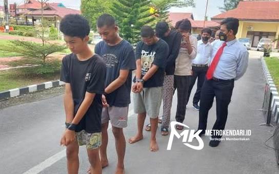 “Para pelaku rata-rata masih berstatus remaja yang berinisial, MR (17), DH (17), ST (19), RZ (20) dan JM (22). Mereka ditangkap di Wilayah Kota Kendari pada Sabtu (19/3/2022),” ujar Kabag Ops Polresta Kendari, Kompol Jupen Simanjuntak dalam konferensi persnya, Senin (21/3/2022).