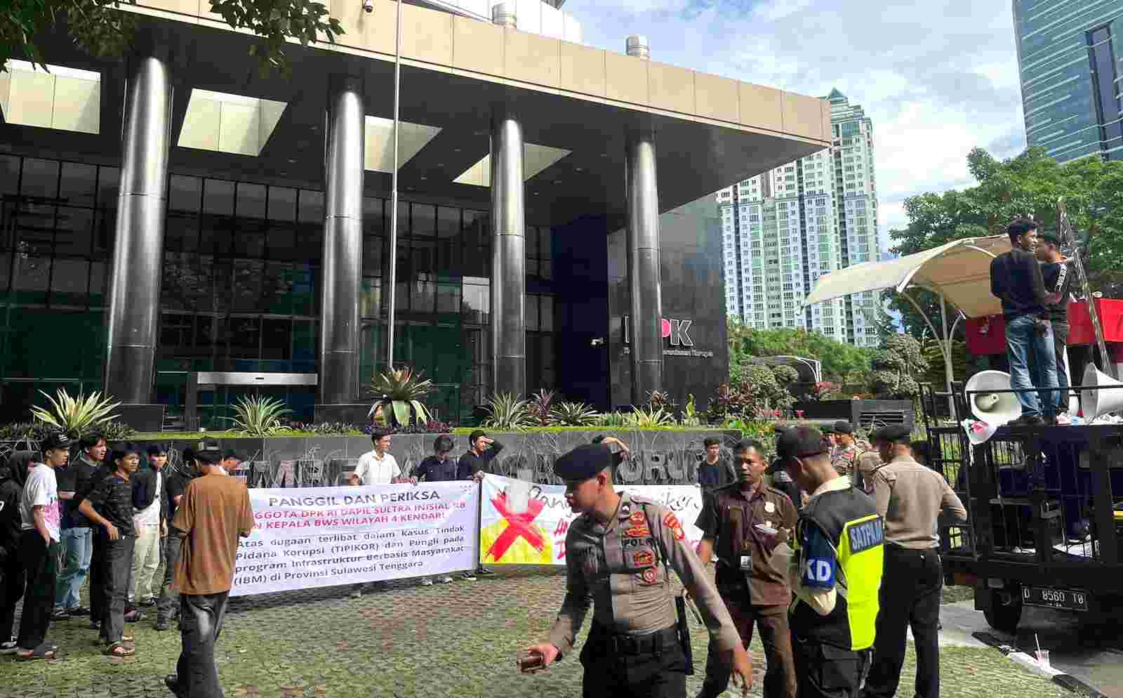 METROKENDARI.COM – Forum Masyarakat Anti Korupsi (Formasi) Sulawesi Tenggara (Sultra) Kembali menggelar aksi demonstrasi di depan gedung merah putih Komisi Pemberantasan Korupsi (KPK) Republik Indonesia (RI) susulan terkait kasus dugaan korupsi dan pungli pada Proyek Percepatan Pembangunan Tata Guna Air Irigasi (P3-TGAI) yang diduga melibatkan anggota DPR RI Dapil Sultra dan pejabat BWS Wilayah 4 Kendari.