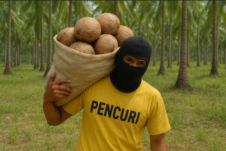 Kasus pencurian ini terjadi tidak hanya di rumah-rumah warga, tapi mulai menyasar perkebunan kelapa.