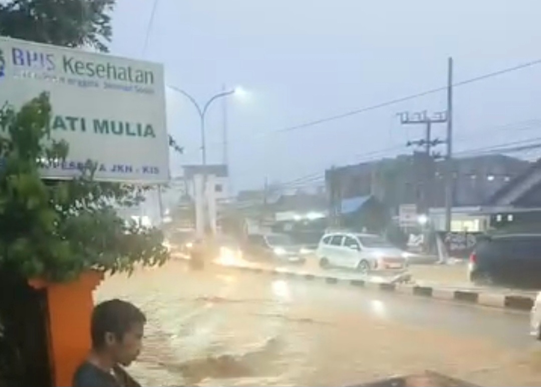 Banjir tersebut menyebabkan arus lalu lintas lumpuh total, kendaraan roda dua hingga empat tidak dapat melintas.