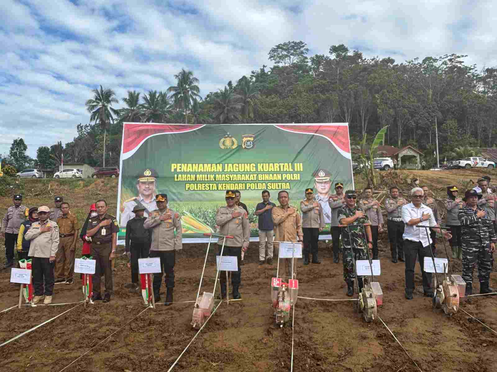 Penanaman jagung dibuka langsung oleh Wakapolda Sultra Kombes Pol. Gidion Arif Setyawan, S.I.K., S.H., M.Hum, dihadiri oleh PJU Polda Sultra, Kapolresta Kendari Kombes Pol. Edwin Louis Sengka, S.I.K., M.Si, perwakilan dari Forkopimda Sultra serta masyarakat kelompok tani.