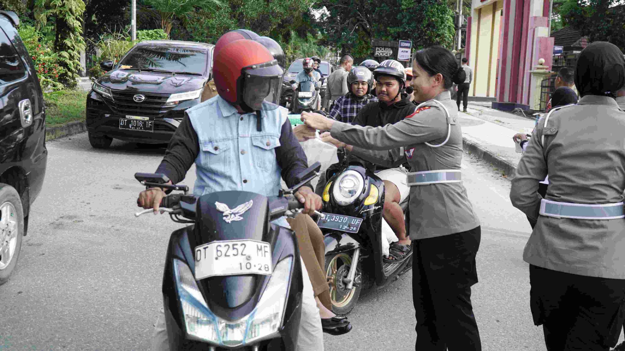 Personel Ditlantas Polda Sultra Turun ke Jalan Bagikan Takjil Buka Puasa ke Pengendara