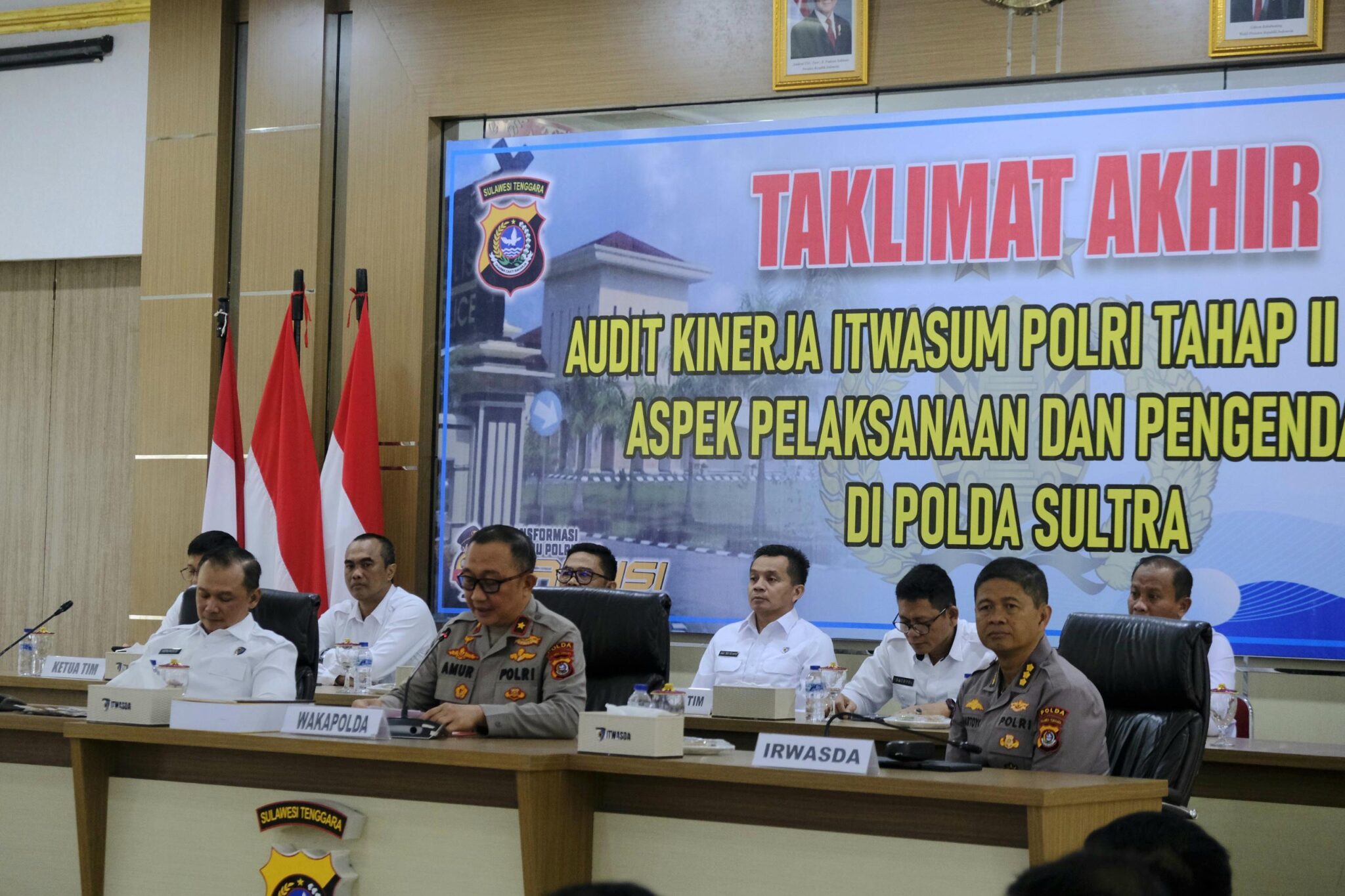 Kegiatan berlangsung di Aula Dhacara Polda Sultra dan merupakan bagian akhir dari proses audit terhadap aspek pelaksanaan dan pengendalian tugas-tugas Polri.