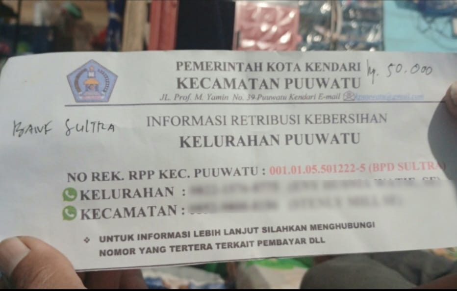Aturan pungutan retribusi yang dibebankan ke masyarakat menjadi pertanyaan publik mengenai anggaran di Pemkot Kendari, khususnya di Dinas Lingkungan Hidup dan Kebersihan (DLHK) Kendari.