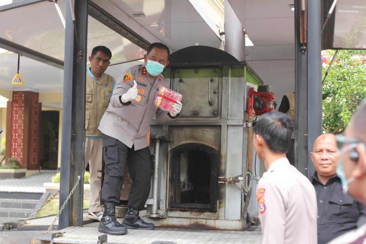Pemusnahan berlangsung di halaman depan loby Mapolda Sultra, Jumat 29 Agustus 2025.