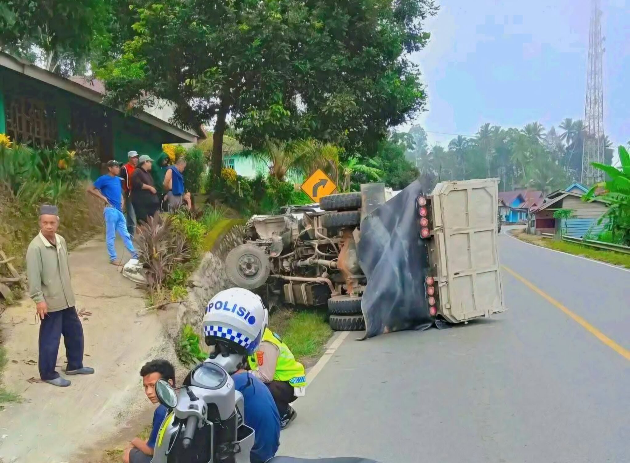 Kondisi truk terbalik usai alami kecelakaan tunggal di Desa Amosilu, Kecamatan Besulutu, Kabupaten Konawe, Kamis (12/2/2026) pagi. Foto.IST