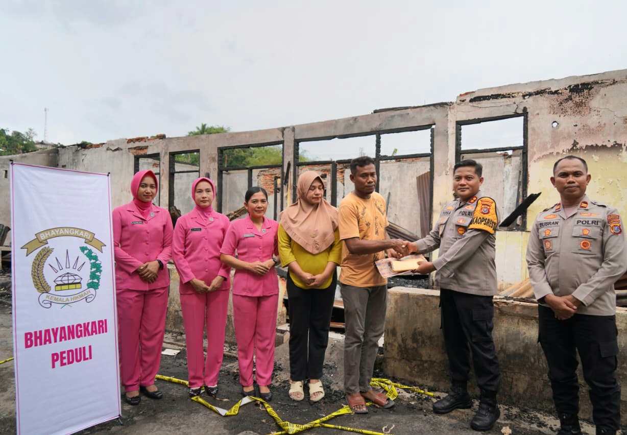 Wakapolresta Kendari Dan Bhayangkari Beri Bantuan Untuk Personel Korban Kebakaran