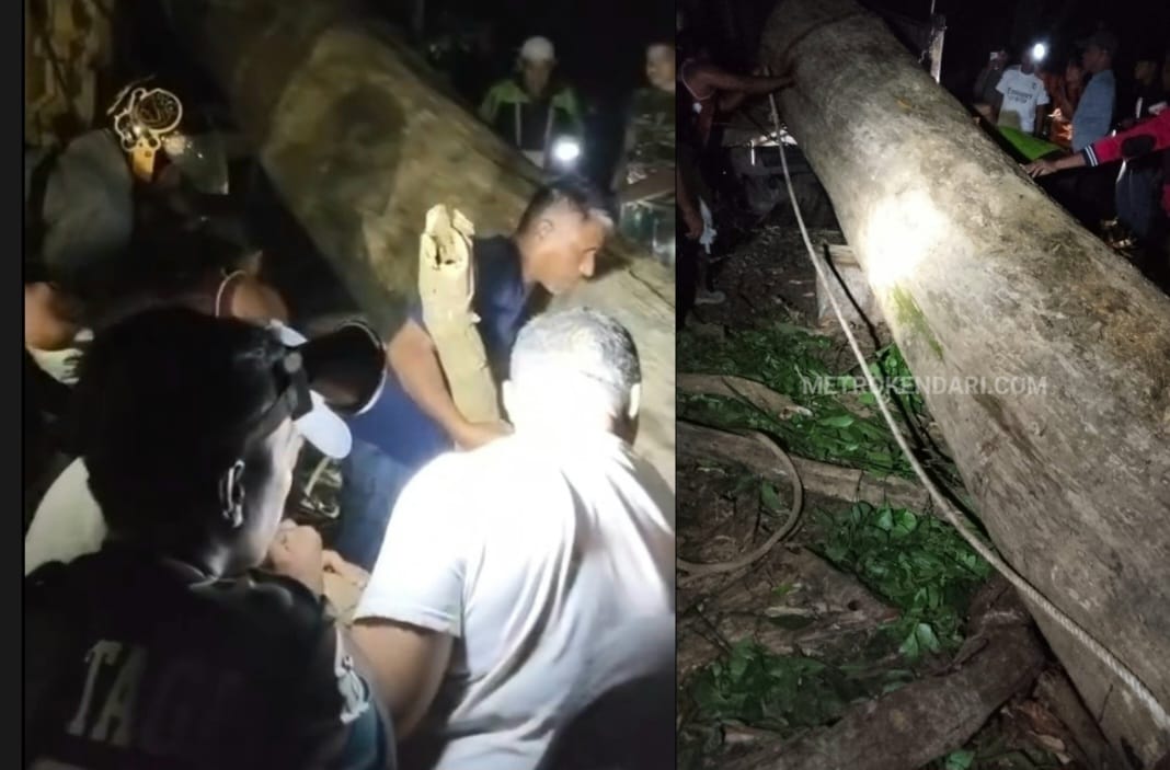 Warga gagalkan pembalakan kayu jati berukuran raksasa di Cagar Alam Tampo, Kabupaten Muna, Sulawesi Tenggara, Sabtu (21/2/2026) dini hari. Foto. metrokendari.com