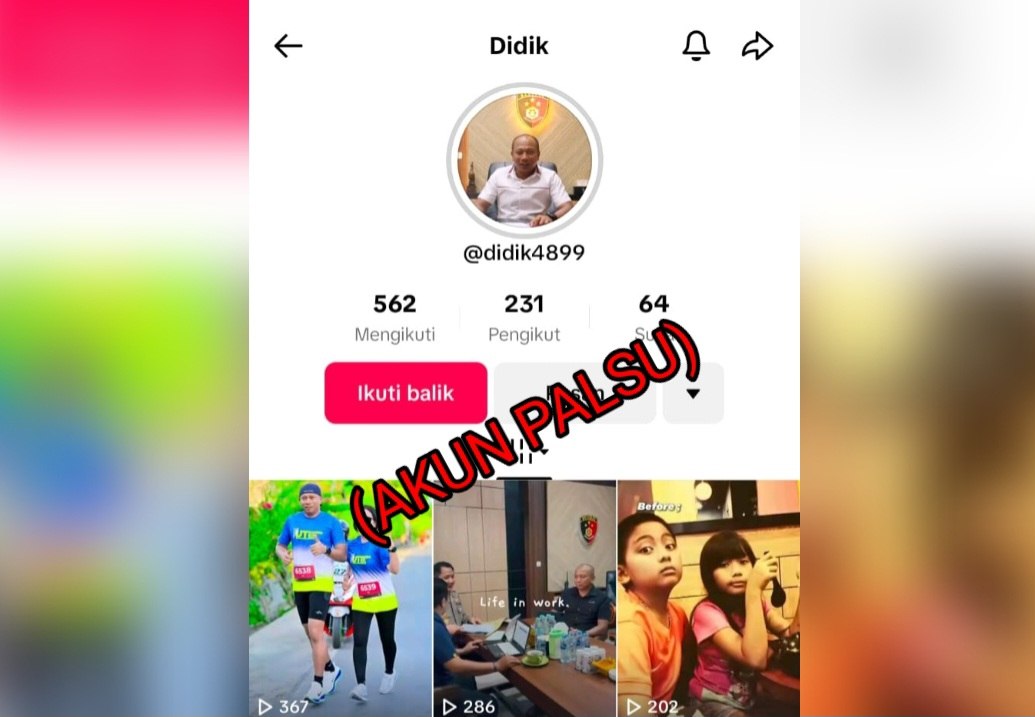 Waspada Penipuan Akun TikTok Palsu Pakai Foto Dan Nama Kombes Pol Dr. Didik Erfianto, SIK.,MH.